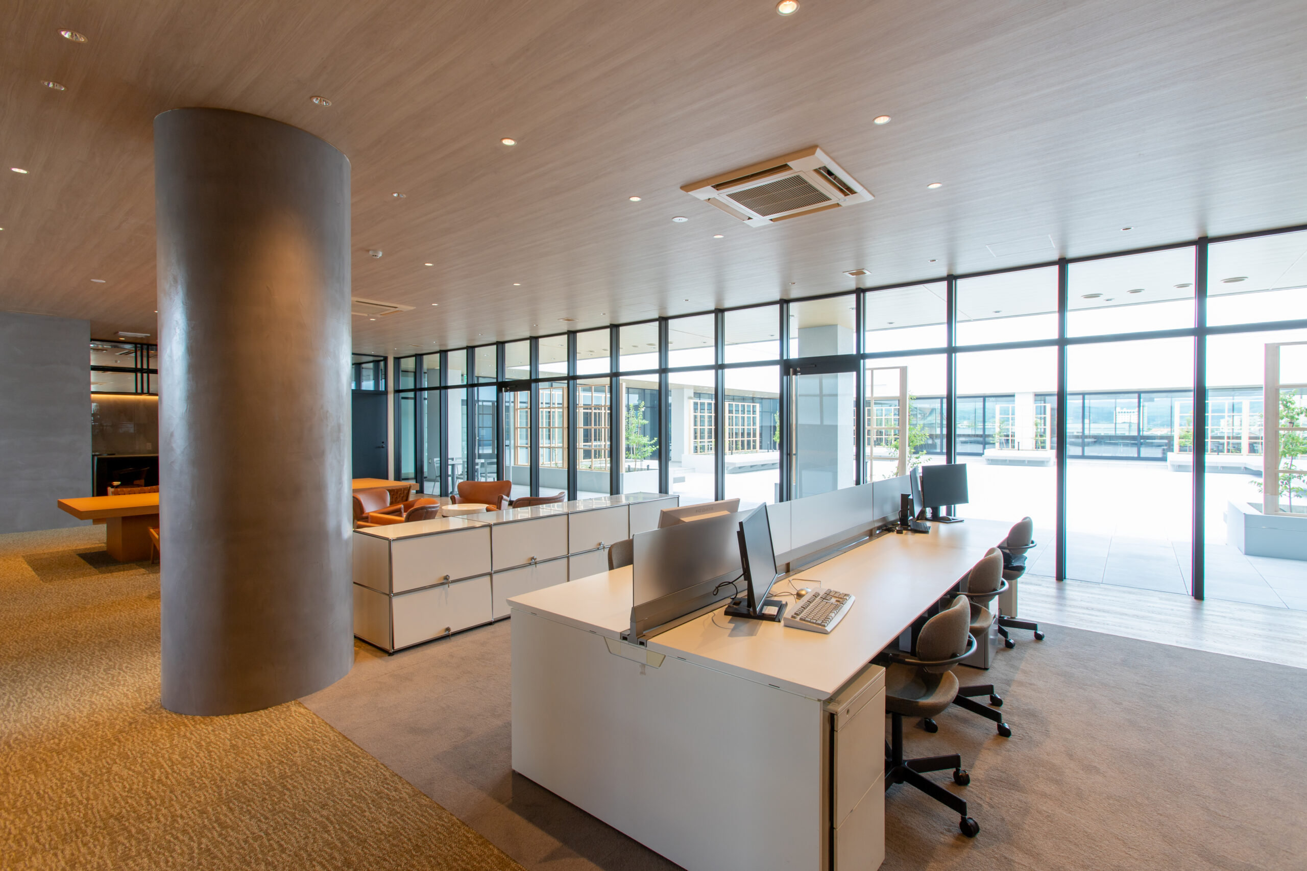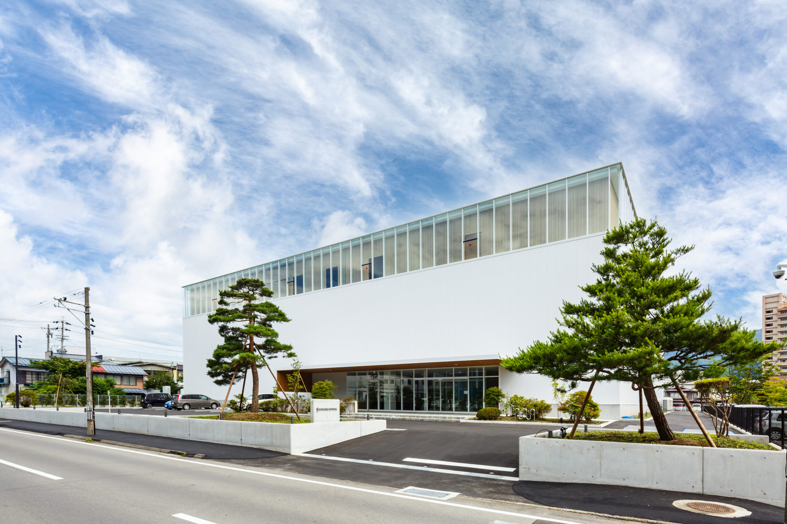 設計当初より、ブランディングデザイナー、建築デザイナー、設計事務所がコラボレーションして実現したプロジェクトになります。諏訪市役所の向かい側という好敷地であり、1階には誰もが立ち寄ることのできるカフェを併設し、地域の人々の憩いの場ともなっています。