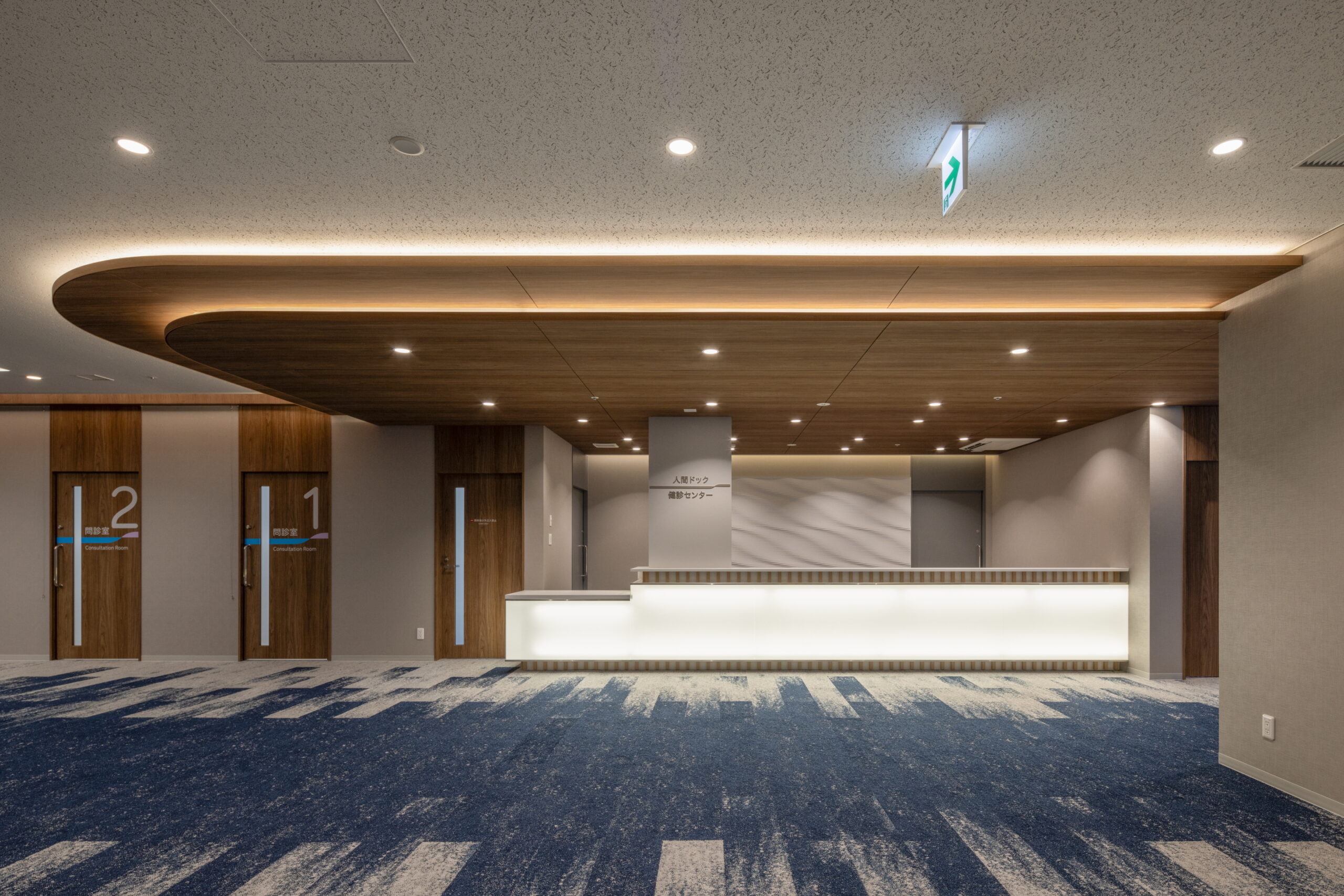 フロアごとに各用途を明確にゾーニングすることで効率的な空間利用を実現しています。また、地域に根ざした歴史ある病院として、誰もが親しみを感じられる空間を目指しました。淡い木目を基調に、木漏れ日を思わせる暖色の間接照明が、和の趣を感じる内装で心と体に寄り添う施設を実現しました。