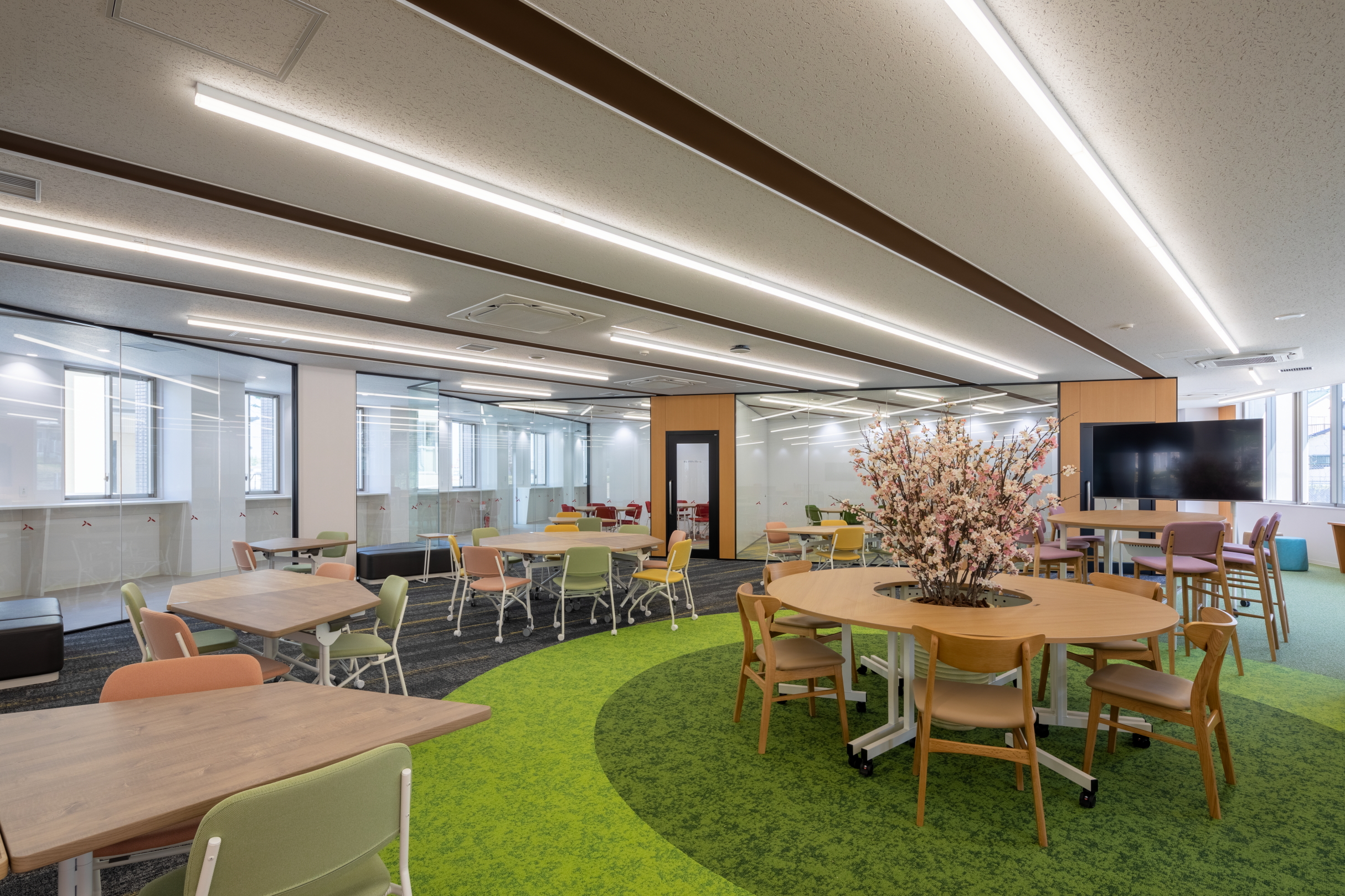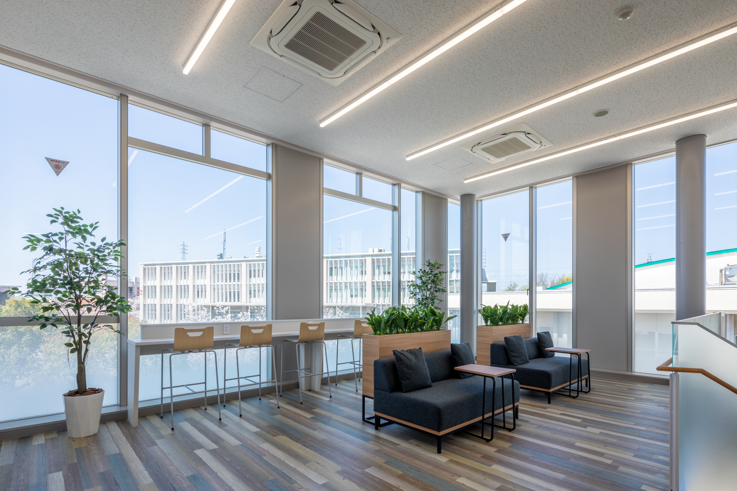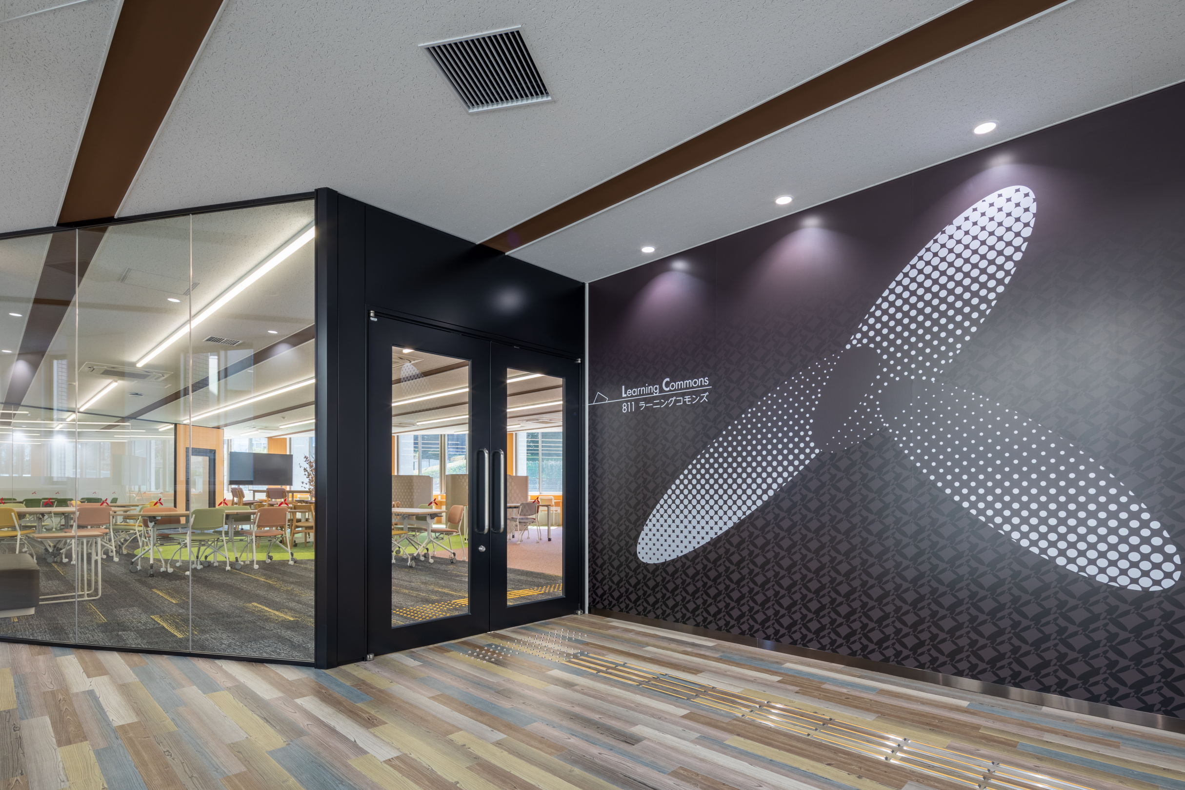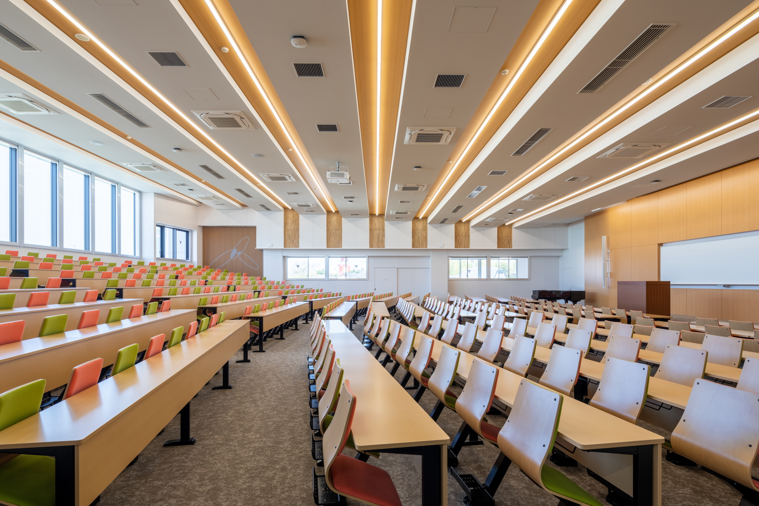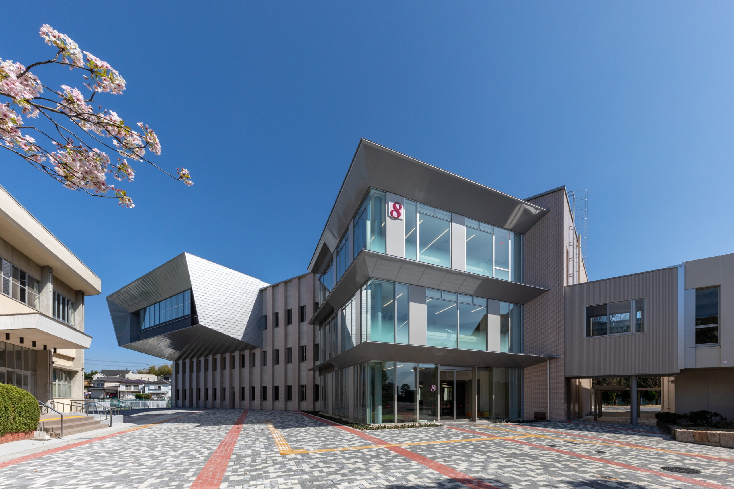 1903年(明治36年)に創立し、このたび桜花学園120周年記念プロジェクトの一環として誕生した新校舎です。日々の講義で使われる教室の他、3階に設置された「さくら講堂」が建物のフレームからダイナミックに飛びだしているシンボリックな外観となっています。1階に設置されたラーニングコモンズは、学生達のアクティビティーを創出する大学の新たな学習環境となると共に、敷地内に併設する幼稚園の子供たちとの交流の場として有効に活用されています。